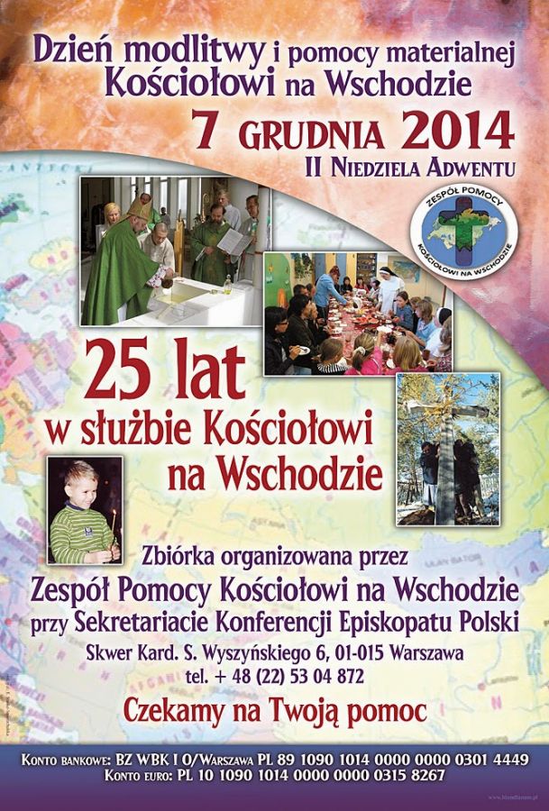 "W imieniu Konferencji Episkopatu Polski zwracamy się o wyjście naprzeciw potrzebom naszych sióstr i braci. Pamiętajmy o modlitwie, o duchowej łączności i to zawsze. Natomiast zachęcamy do złożenia swego daru świątecznego właśnie w drugą niedzielę Adwentu, czyli 7 grudnia, serdecznie zapraszamy Polaków w kraju i poza jego granicami do solidarności w przeżywaniu tego dnia: modlitwy, wsparcia i wdzięczności.