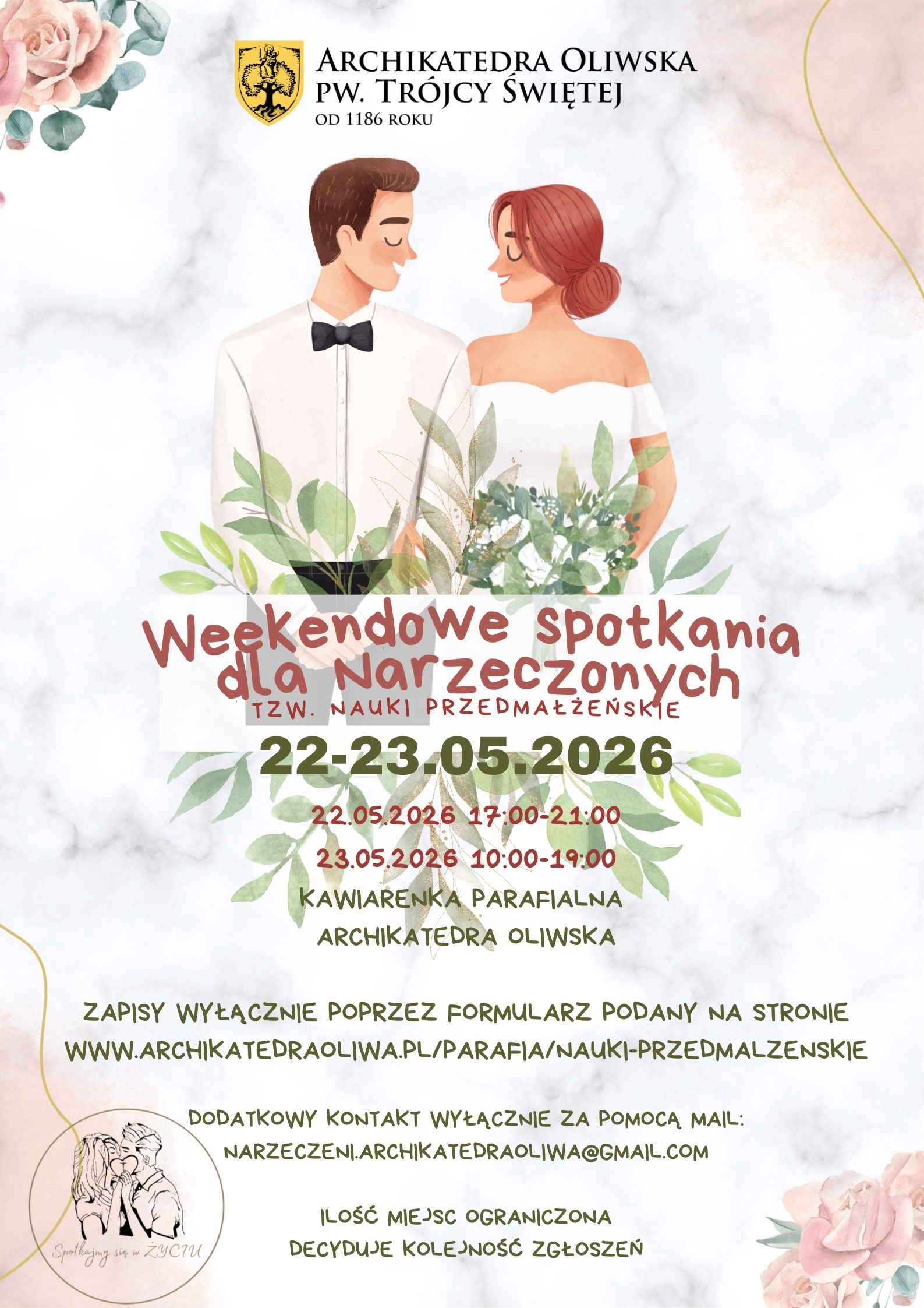 Uwaga: we wszystkich spotkaniach uczestniczą obowiązkowo oboje narzeczeni w czasie jednego weekendu.